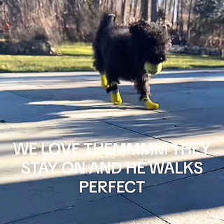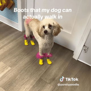 To put on our dog boots, you can fold them in half to slip the boot on the dog's toes before flipping the boot up and pulling it into place. You can find a video walkthrough on how to put on our dog shoes here.