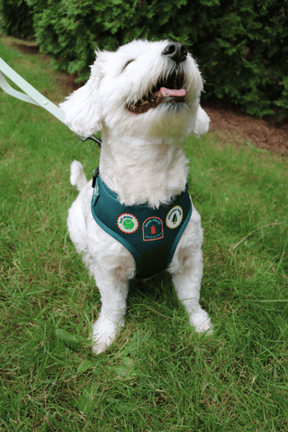 If you've tried to put a cute bandana on your dog and failed... our Cushion harness with adorable prints is for you